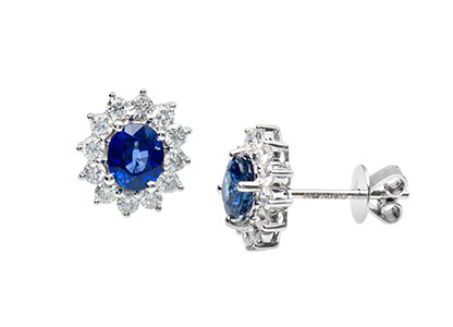 City of London Jewellers present these gorgeous 18ct White Gold Blue Sapphire & Diamond oval Cluster Stud Earrings ESA00422.