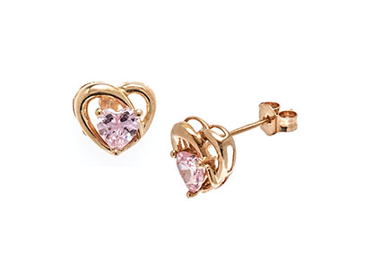 CITY OF LONDON JEWELLERS PRESENT THESE GORGEOUS 9CT YELLOW GOLD CUBIC ZIRCONIA PINK HEART EARRING STUDS.
