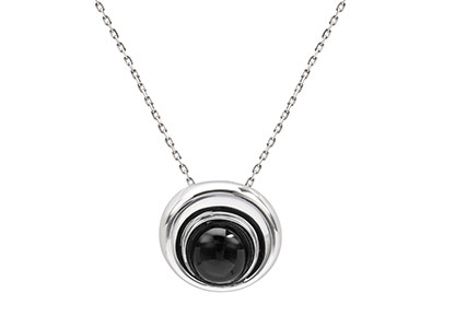 Be noticed with this stylish modern real silver pendant and chain with a bold round cabochon onyx centre. The onyx is slightly raised with a polished rub over setting.
