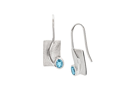 These stylish modern 925 real silver earrings have a frosted matt background, overlaid with a contrasting high polished wire, following on from the hook ear wire across the earring to a beautiful oval sky blue topaz stone, in a secure rub over setting. These outstanding earrings are made to the highest standard with an anti tarnish rhodium finish , using the finest materials and jewellery making skills, to create a unique and personal item to be treasured.