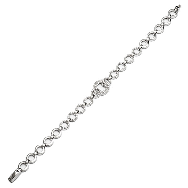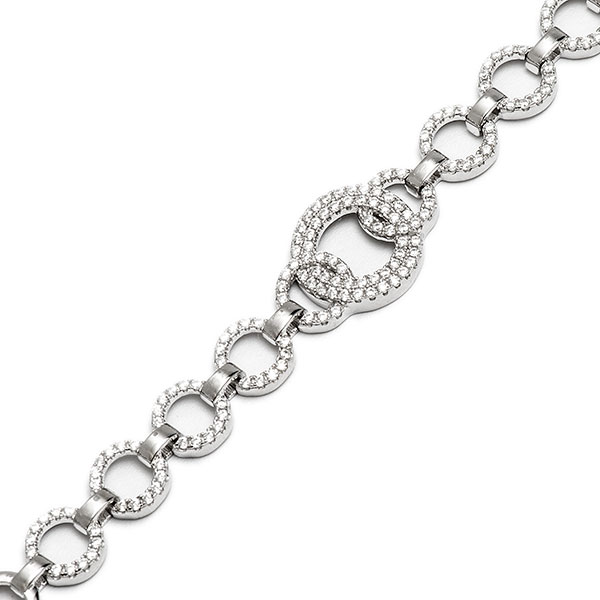Elegant and full of sparkle, this real silver and cubic zirconia bracelet from the Bonita jewels collection, is set with one hundred and sixty-four, round, brilliant cut, dazzling, white cubic zirconia’s of the finest quality. Finished to the highest standard with an anti-tarnish rhodium finish, recreating the look and sparkle of real flawless diamonds.