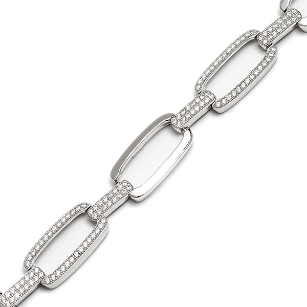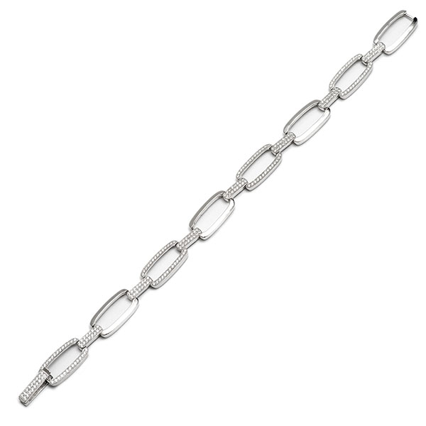 This bracelet has alternating plain and mill grain set, sparkling white cubic zirconia links, joined together with a cubic zirconia bar. The ingenious design of the clasp on this bracelet means it is invisible when closed.