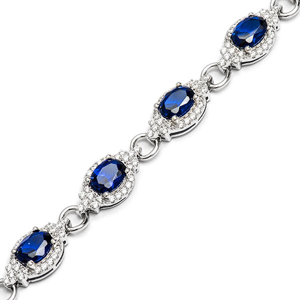 This stunning art deco style bracelet from crafted in real silver.  Nine clusters set with sparkling white and royal sapphire blue cubic Zirconia’s, make this bracelet one of the ‘must have’ pieces from the Bonita Jewels collection.