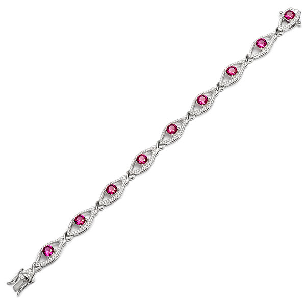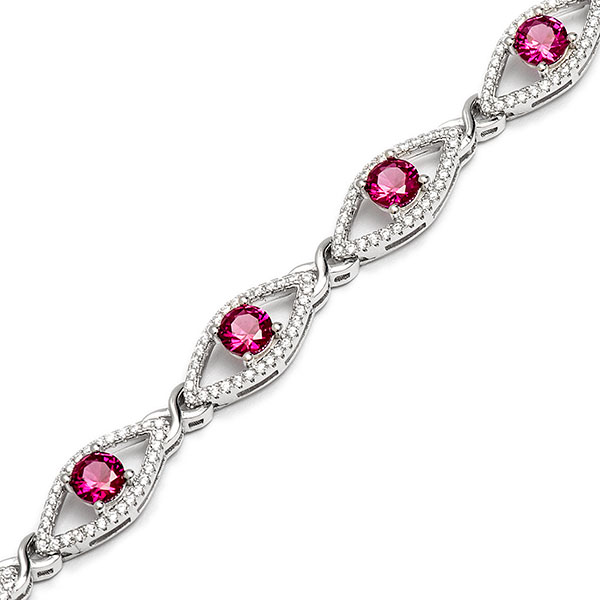 A gorgeous, modern style bracelet from the Bonita Jewels collection, that is sure to turn heads with admiring glances. Crafted from real silver into nine marquise shaped clusters, set with sparkling white and ruby red cubic Zirconia’s. Each cluster is linked with a captivating highly polished feminine and romantic kiss link.