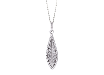 Drawing inspiration from the shapes of nature, this unusual leaf design pendant from the Bonita collection, evokes a satisfying trend of the season, set with a total of one hundred and nineteen stones.