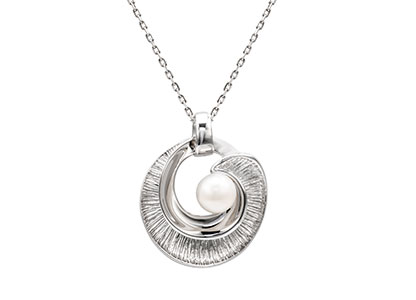 Beautiful and bold, this substantial pendant is set with a real cultured pearl and finished to a very high standard. Highly polished on the back and edges and complimented with a contrasting matt line engraved centre. Truly an exquisite design inspired by natural shell shapes from the ocean.