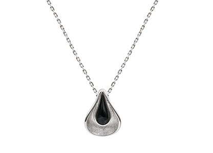 This unusual pendant has a beautiful almost organic look, inspired by the many shapes of the orchid leaf. It’s smooth contours and curves give it a very tactile feel. The highly polished finish of the pear shape cabochon cut onyx contrasts perfectly with the matt finish of the curved background and highly polished edges, this beautiful pendant is sleek and elegant and ideal for both day and evening wear.