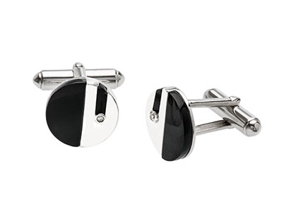 Moreover, these cufflinks feature bold black stones on one side and a sparkling round cubic zirconia on the other, creating a refined contrast that reflects timeless taste.