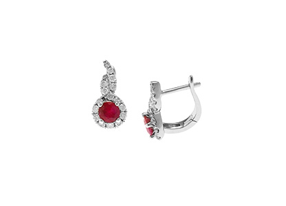 18ct White Gold Ruby & Diamond Earrings In The UK ESA00396. Crafted to perfection by hand, using age old tradition’s of knowledge skill and craftsmanship.