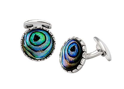 REAL STERLING SILVER & PAUA-SHELL ROUND CUFFLINKS CK00150.