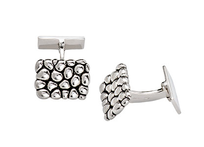 A statement feature of a rugged cobblestone look grouted with black enamel. This heavy cufflink is ideal for everyday use and makes an imaginative gift for the love of your life.