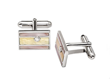 Real Sterling Silver Cufflinks with Yellow and White Mother of Pearl and Cubic Zirconia.