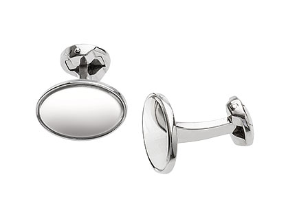 Real sterling silver oval polished cufflinks with one thin line engraved around the border.