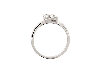 Luxurious and elegant, this stunning 18 carat white gold two stone diamond crossover ring is perfectly accentuated by the deep lustre of the polished white gold. The two round brilliant cut diamonds, set in an unusual four-claw setting, to get the greatest possible light reflection. The diamonds have been perfectly matched and chosen for their exceptional sparkle and fire. This elegant design creates a dramatic, eye-catching effect.