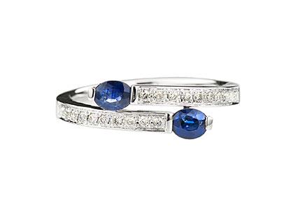 - Two oval blue sapphires (3.5mm × 4.5mm)